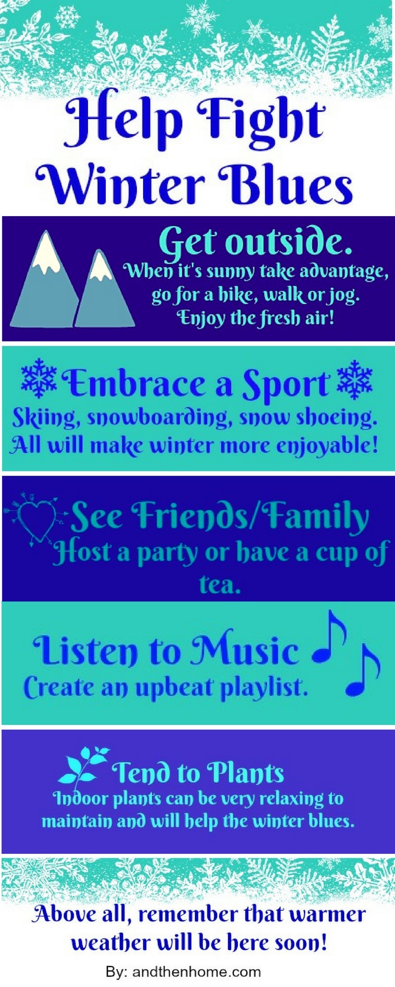 Whatever you do to keep the winter blues away stay positive, winter WILL end and summer WILL come. Make the most of everything!