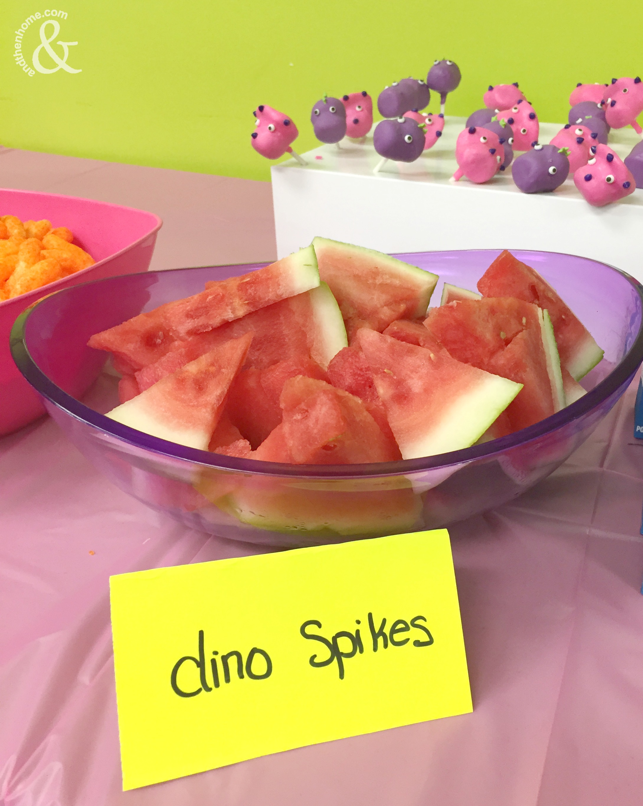In lieu of a traditional birthday cake there were Dino-pop’s offered. All the kids seemed to like the cake pops because it was something a little different. Sticking to the colour theme, they were pink and purple and oh-so cute.